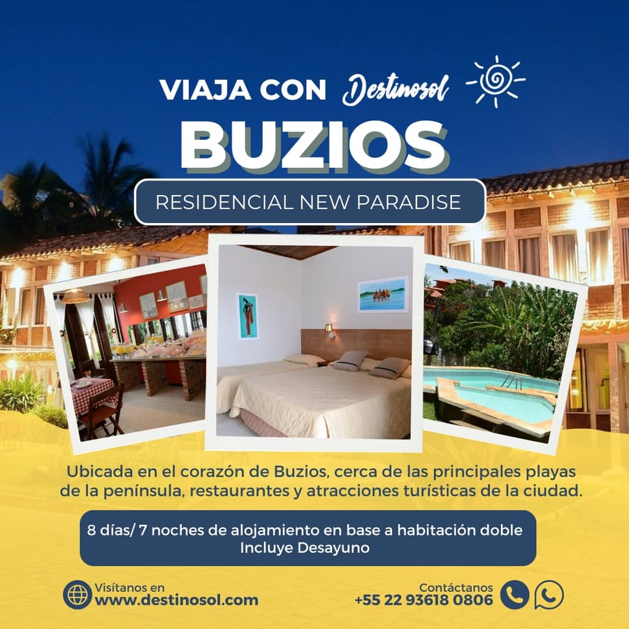 Descubra a beleza e o encanto do litoral brasileiro na nossa viagem exclusiva "Buzios y Rio 2026". Durante os primeiros cinco dias, você será imerso na atmosfera relaxante de Búzios. Explore praias paradisíacas, desfrute da culinária local e aproveite a vibrante vida noturna. Com um Travel Companion fluente em espanhol e português, você terá uma experiência personalizada e livre de preocupações.